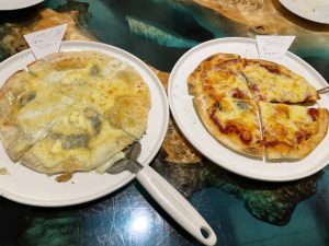 おいしいカルパッチョやピザ、パスタなどを食べながら、